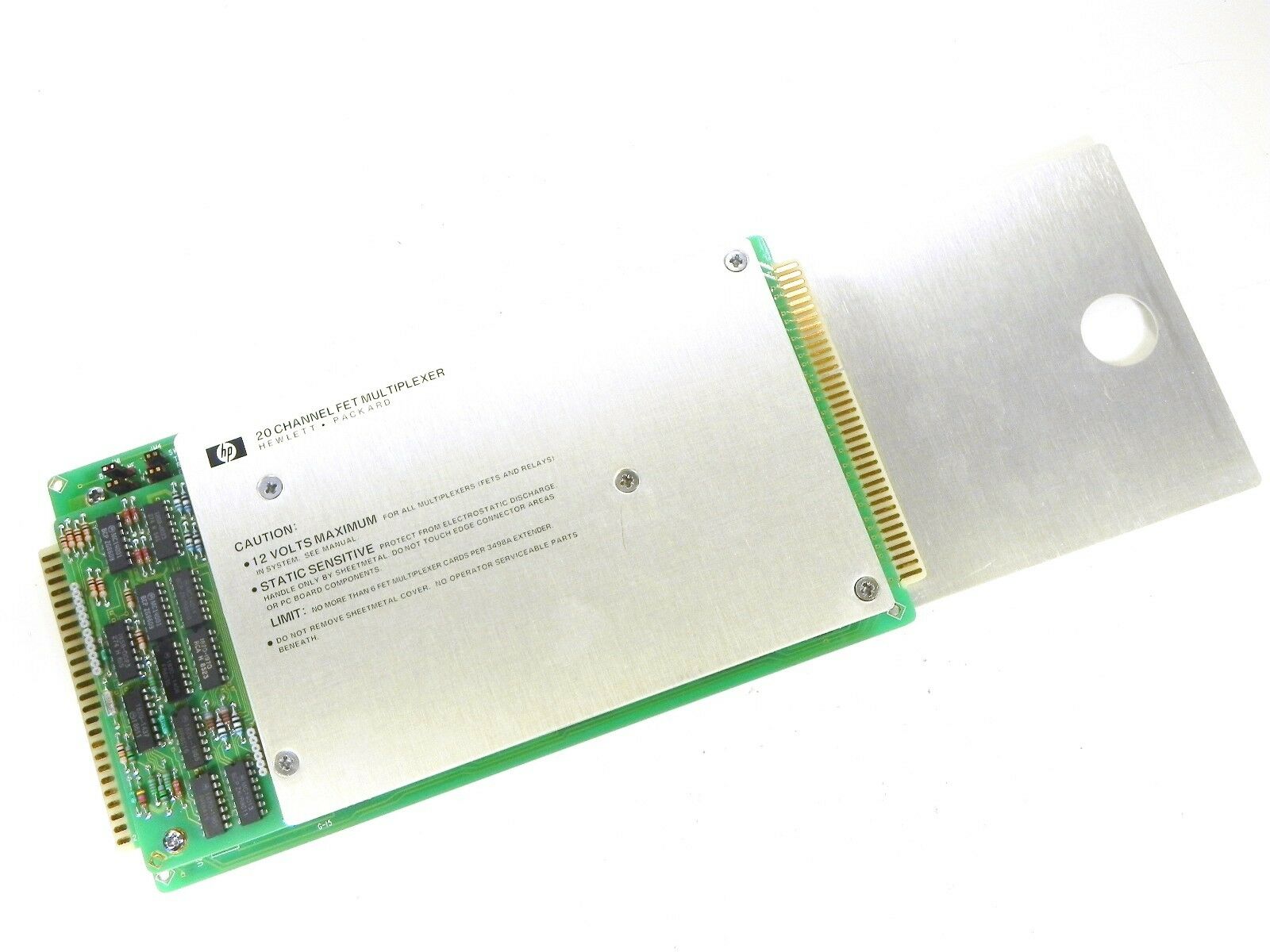 The Agilent/Keysight 44423A is a 20-channel FET multiplexer that routes signals in automated test systems and precision measurement applications. Each of its 20 channels contains three relays—High, Low, and Guard lines—organized into two groups of 10. The multiplexer supports flexible switching modes: one channel per decade closure, random channel selection, or incremental stepping between programmable limits. Simultaneous closure of two channels (one per decade) enables four-terminal resistance measurements. Its low thermal offset characteristics make it ideal for precision transducer and temperature-sensor measurements where signal integrity and measurement accuracy are critical.